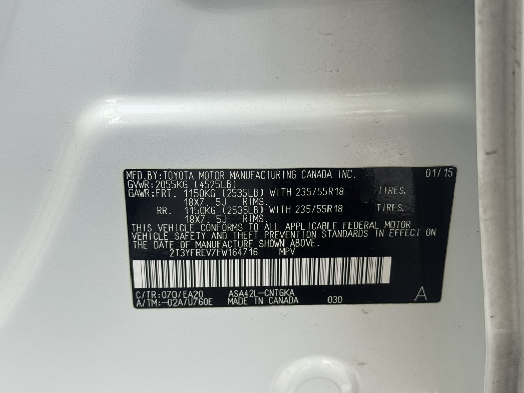 | VIN #: | 2T3YFREV7FW164716 |