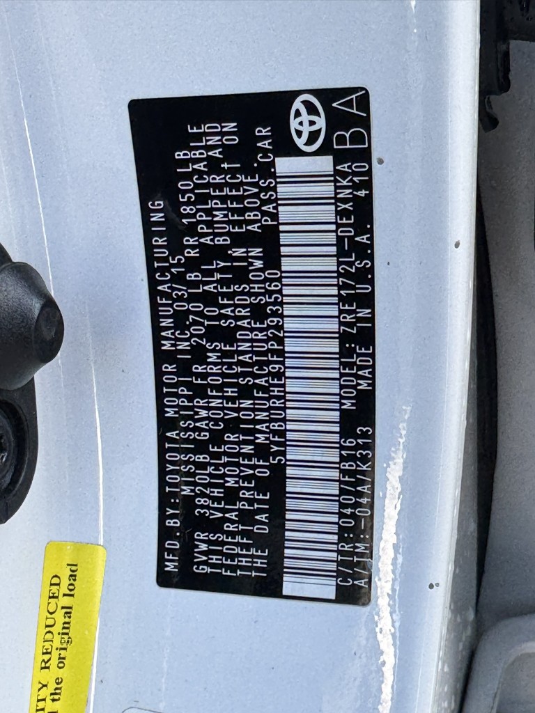 | VIN #: | 5YFBURHE9FP293560 |
