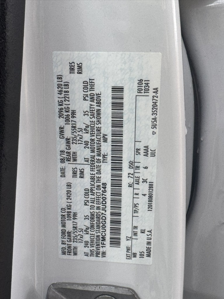 | VIN #: | 1FMCU0GD7JUD07648 |