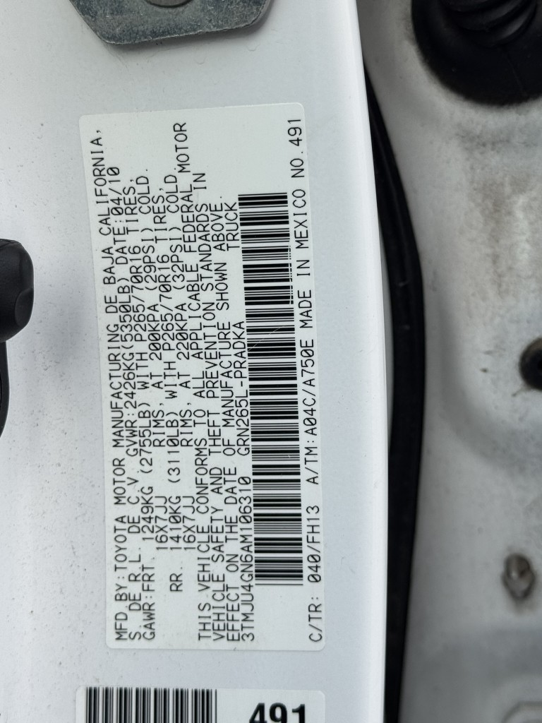 | VIN #: | 3TMJU4GN6AM106310 |
